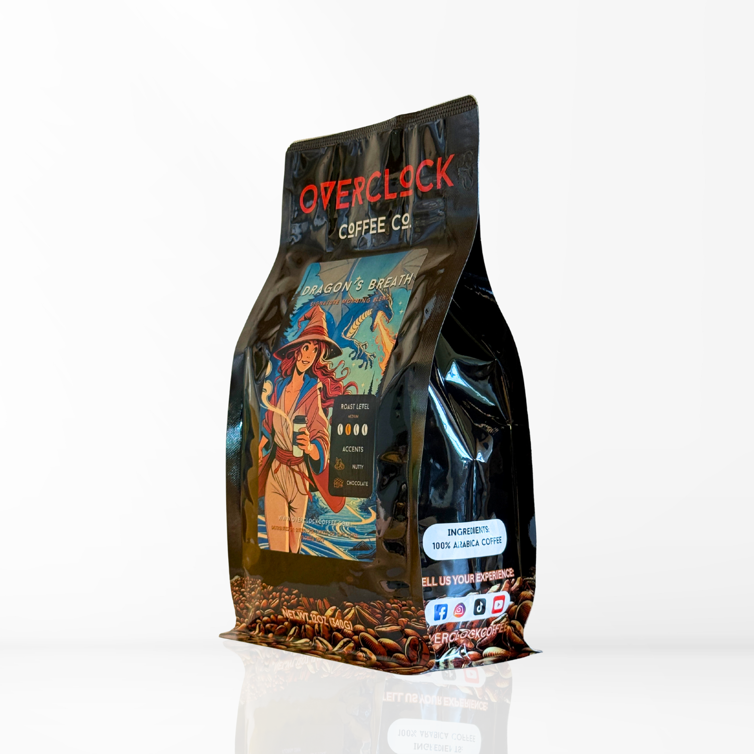 Dragon’s Breath Roast is Overclock Coffee Co.’s flagship unflavored dark roast, roasted to perfection with rich chocolate depth and subtle nutty undertones. Designed for everyday heroes and high-stakes mornings, this legendary blend delivers a smooth, strong brew that holds up to any quest—no flavoring, just pure coffee power.