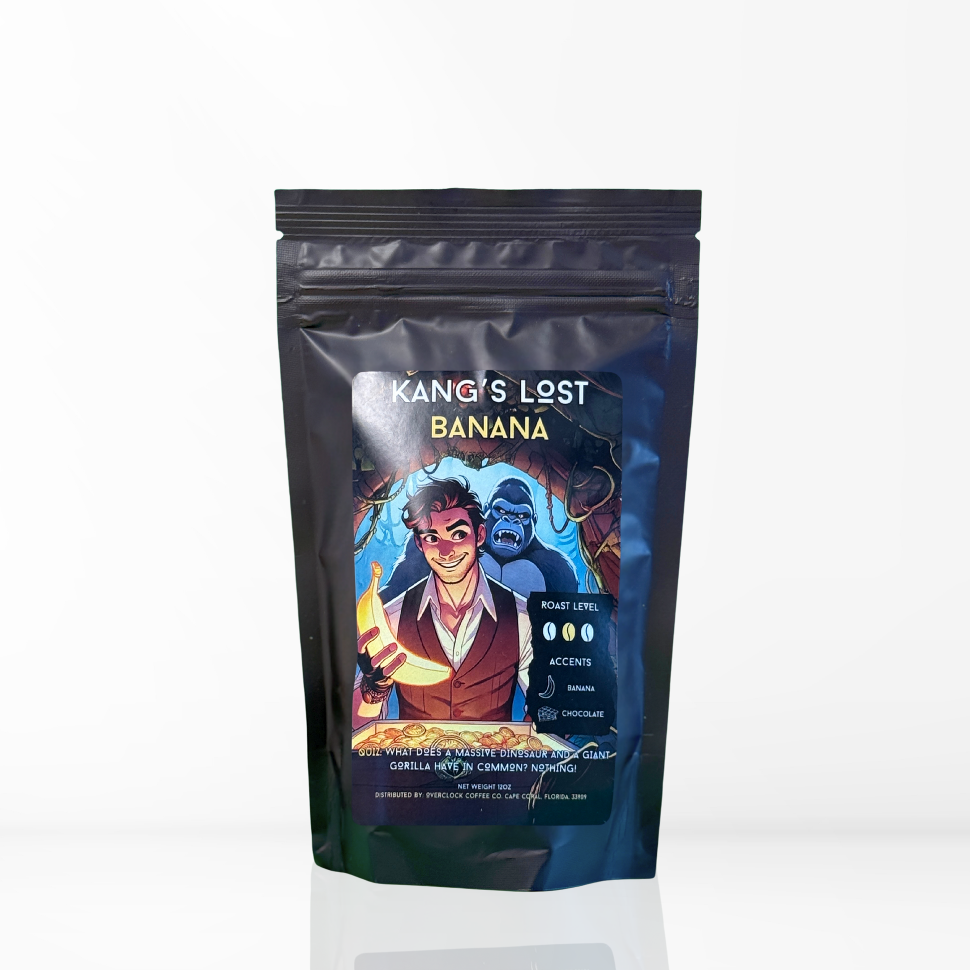 Kang’s Lost Banana is a tropical-inspired banana chocolate flavored coffee that fuses creamy banana sweetness with a rich, medium-dark roast base. Whether you’re powering through your to-do list or just escaping the morning fog, this brew brings jungle vibes without leaving your desk.